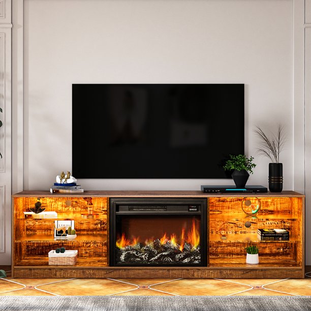 Amazon Com Bridgevine Home Tv Stand With Electric Fireplace 85 Inch Multi Color Light Functions Fully Assembled And Solid Wood Media Console With Space Heater Home Kitchen
